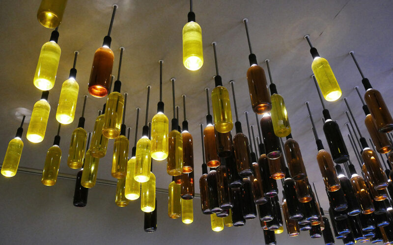 E se le bottiglie luminose fossero il lampadario stesso della stanza? Moltissimi punti di ristori stanno cavalcando l’onda della moda “recycle style” dando un tocco di originalità molto apprezzato. La luce, insieme al colore ed al grado di trasparenza delle bottiglie, crea un gioco di ombre colorate che da all’ambiente un nuovo aspetto. E chi dice che non si possano cambiare le bottiglie in corso d’opera? Cerca il modo giusto per ottenere ciò che vuoi. La soluzione si nasconde nella tua creatività.