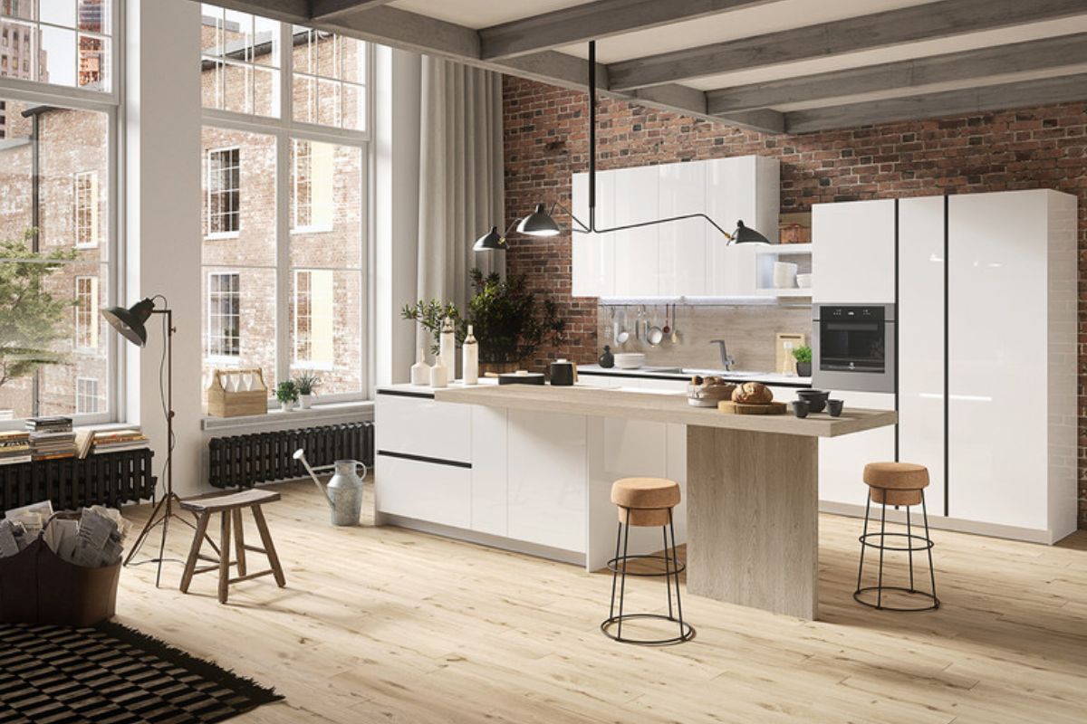 - Perché è amato: Combina la modernità delle cucine bianche con la robustezza e il carattere del legno e del metallo, perfetto per loft o ambienti con una forte identità architettonica.