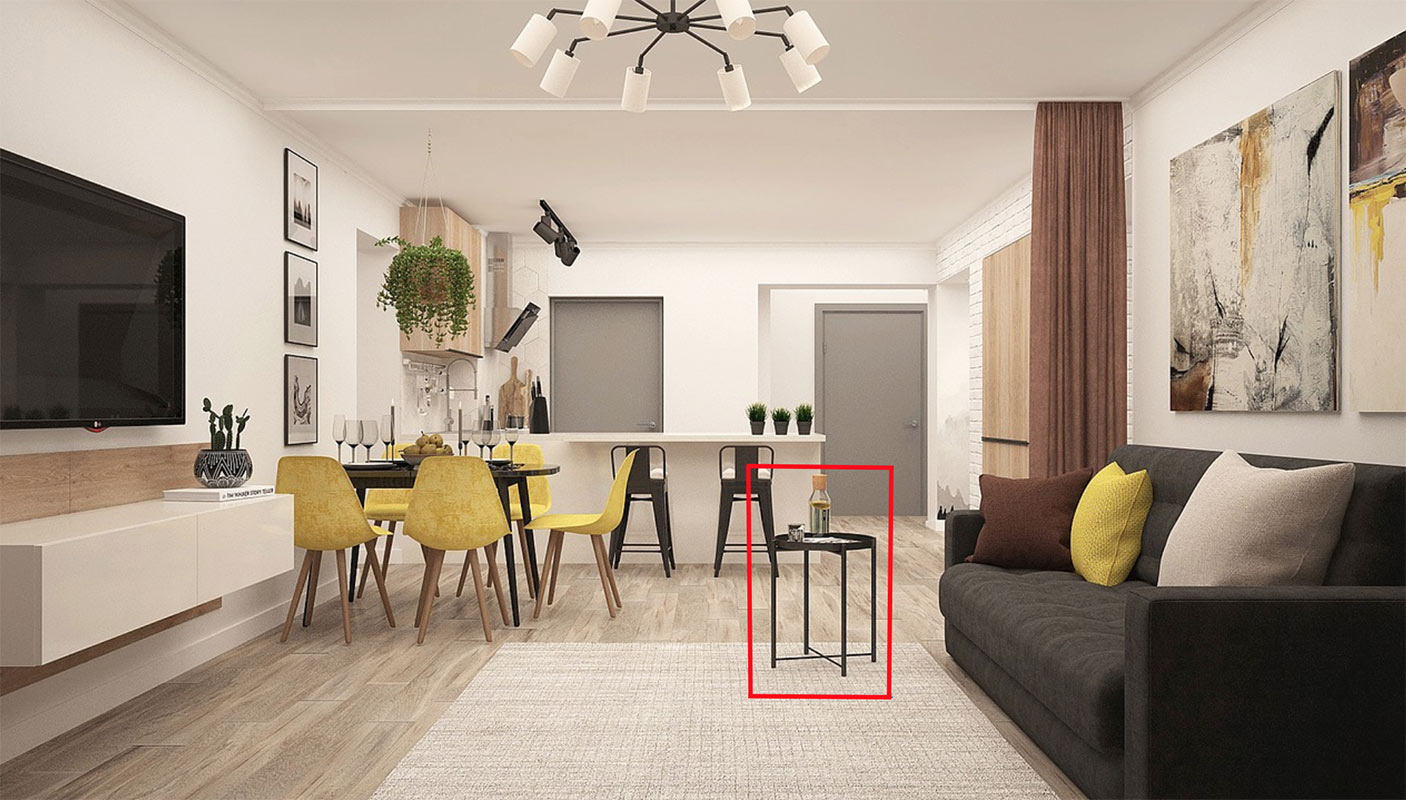Per rendere la zona living ancora più attraente basterà per esempio spostare e cambiare la tipologia del tavolino applicando la sezione aurea come linea guida per posizionare l’elemento. Lo spazio che creeremo con questo piccolo trucco risulterà armonizzato e bilanciato; inoltre si definirà in maniera chiara il percorso da seguire per spostarsi dalla zona living all’area cucina.