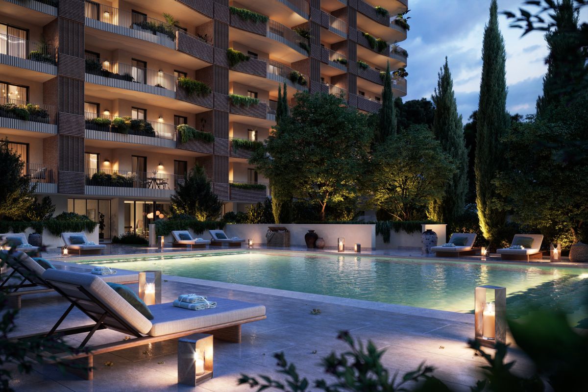 Le aree esterne ospitano una conciergerie, un giardino con piscina condominiale all’aperto e un’ampia area giochi per bambini. Al piano terra sono previsti gli ingressi ai quattro vani scala e servizi ad uso condominiale: la palestra, una pet area, una play room, una zona co-working e un ambiente a disposizione delle famiglie e dei bambini, tutto in nome di una visione che restituisca un ruolo primario alla condivisione e alla collettività.